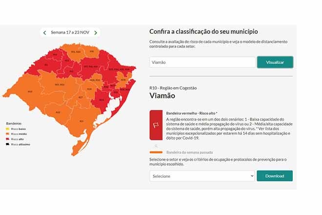 O governo do Estado coloca Viamão novamente no vermelho no mapa do distanciamento controlado. A decisão, divulgada nesta sexta-feira (13), a dois dias das eleições municipais, indica que o risco epidemiológico em relação ao coronavírus.