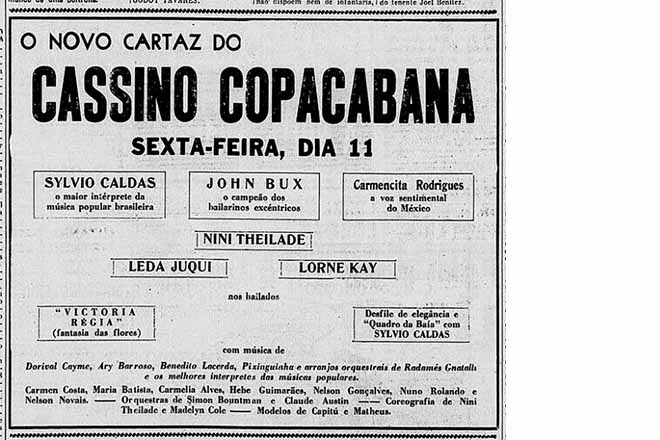 : Laura Suarez e Orson Welles assistindo Nini no Cassino do Copacabana Palace
