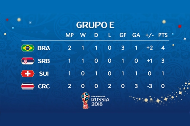 O Brasil volta a campo no dia 27 de junho, próxima quarta-feira, às 15h, para encarar a Sérvia, jogo válido pela última rodada do grupo E.