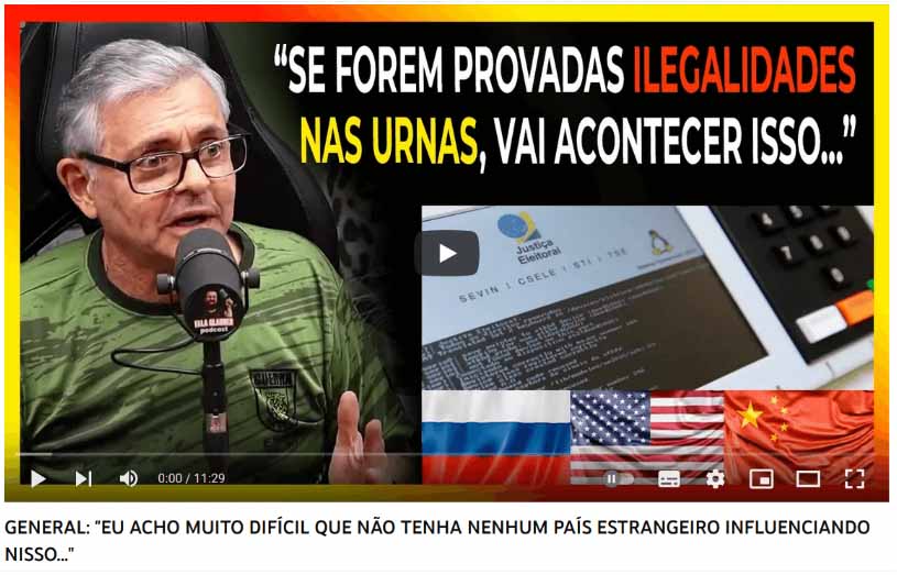 – Se ocorrer alguma coisa em decorrência de ilegalidades, essa ilegalidade não será enfiada goela abaixo. Sem querer sugerir alguma coisa, nós já vimos que historicamente as Forças Armadas nunca ficaram, nunca deixaram de socorrer à nação – disse o militar em entrevista ao podcast Fala Glauber, pouco antes do segundo turno.