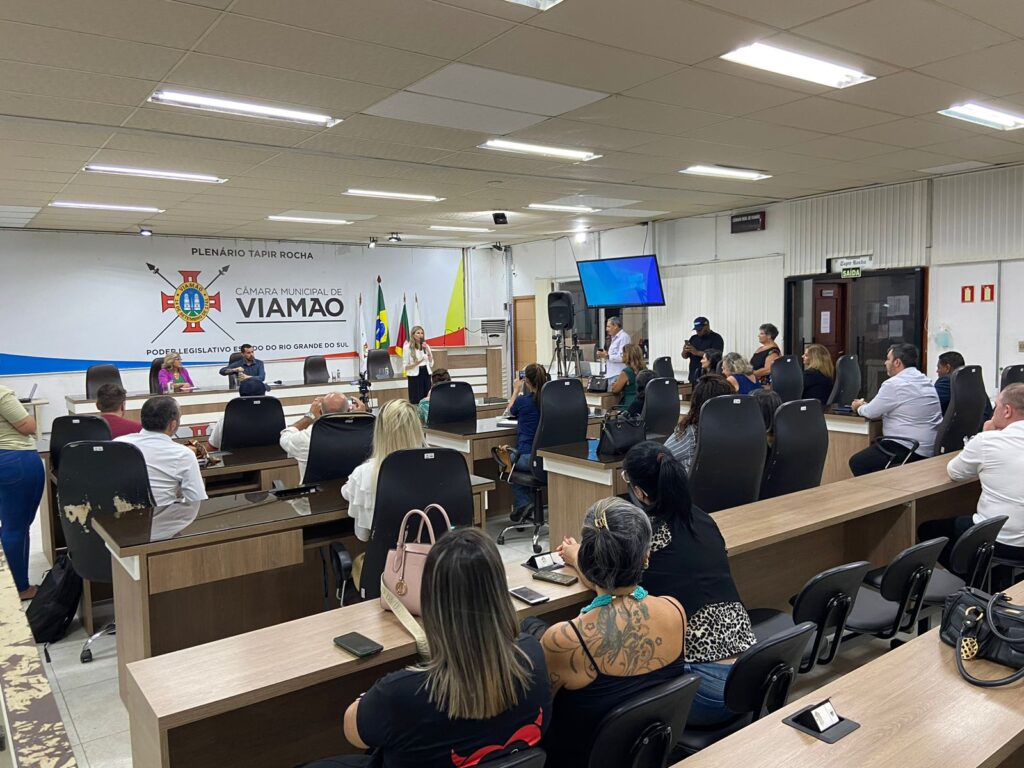 A Câmara Municipal de Viamão – CMV, por iniciativa do vereador Prof. Igor Bernardes – PL, realizou mais uma reunião do Fórum Permanente de Desenvolvimento Social e Econômico de Viamão na noite da última quarta-feira (29), no plenário Tapir Rocha. O tema abordado foi “Mulheres Empreendedoras”, com a participação da empresária Miriam Mainard, da rede Baita Super. Também estiveram presentes o presidente da Câmara de Dirigentes Lojistas – CDL, Milton Pires; o presidente da Associação Comercial, Industrial e de Serviços de Viamão – Acivi, Rodrigo Herculano; o presidente do Consepro, Leandro Lopes; e a representante do Conselho Regional de Corretores de Imóveis – Creci, Iara Mignon.