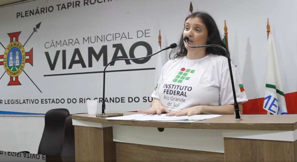 A diretora de ensino Maira Vieira apresentou informações sobre o trabalho do IFRS e o desenvolvimento territorial, que é uma de suas bandeiras. “Temos uma relação simbiótica com o território, tanto que para que possamos abrir um curso, fazemos uma consulta pública. Somos uma autarquia, autônoma, pluricurricular e multicampi. Atendemos diversas modalidades de ensino e temos 17 campi no RS. No IFRS temos ensino técnico e tecnológico (uma graduação curta). Buscamos dar suporte às vocações, potencialidades e arranjos produtivos, sociais e culturais do território”, explanou.