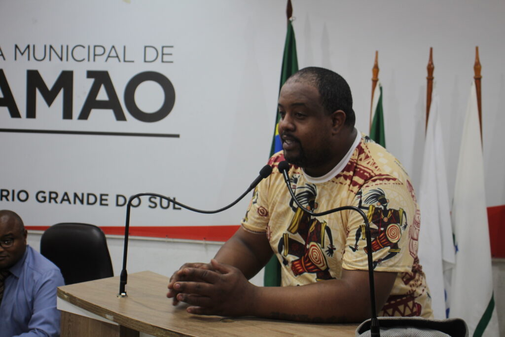 “De acordo com o censo, o município tem 51% da população preta, parda e periférica. Ainda assim, não temos todos os avanços que gostaríamos. Precisamos refletir sobre o que mais podemos fazer em Viamão para a construção de políticas públicas aos povos negros, contemplando a reparação histórica ncessária. Há muito a avançar. Temos a maior bancada negra de vereadores do estado nesta Câmara”, afirma Baba Phil. O presidente nacional da Cooperativa dos Povos Tradicionais de Matriz Africana – COOPTMA enfatizou, em sua fala, temas como garantia de liberdade de culto e crença, além da necessidade de espaços mais amplos de diálogo com o poder público.