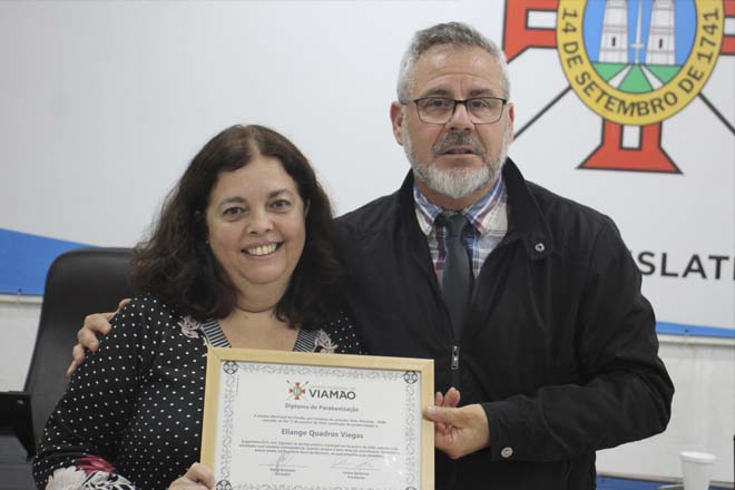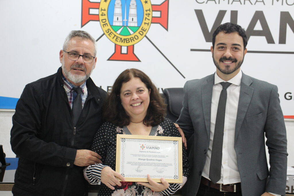 Dédo Machado subiu à tribuna para congratular a servidora por seu serviço prestado ao município. “Nada mais justo do que homenagear aqueles que fazem a história de Viamão. A Eliange me ajudou muito, admiro ela por sua competência, sempre com muita disponibilidade para auxiliar. Ela prestou um serviço de grande relevância para o nosso município, e nesta homenagem está o reconhecimento desta Casa por tudo o que fez por Viamão”, enfatizou.
