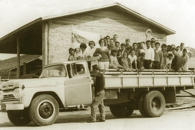 No caminhão, emprestado pelo Zé Grassi (de pé na porta do veículo), estão embarcados para a viagem a torcida, a madrinha do time, a direção (o “Seu” Mario e o Amarante) e o primeiro e o segundo quadros do Granada, tradicional time da região da Santa Isabel.