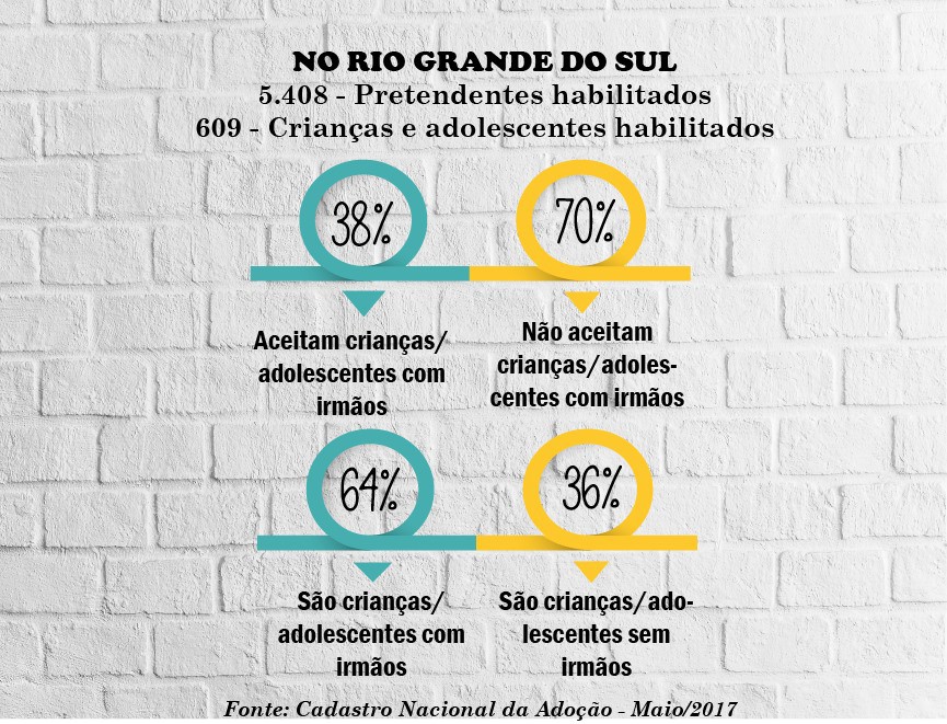 Das 609 crianças disponíveis para adoção no Estado, 209 estão em Porto Alegre que têm os dados cruzados com os cerca de 40.000 pretendentes habilitados no Brasil inteiro, pois o cadastro é nacional. A preferência é para os pretendentes mais próximos, da mesma cidade ou estado. Se não houver, é feito o cruzamento com os dados de possíveis famílias do restante do país. Os profissionais precisam abastecer os dados do CNA com frequência e agilidade e mantê-lo atualizado, além de ter persistência nessa busca para esgotar todas as possibilidades.