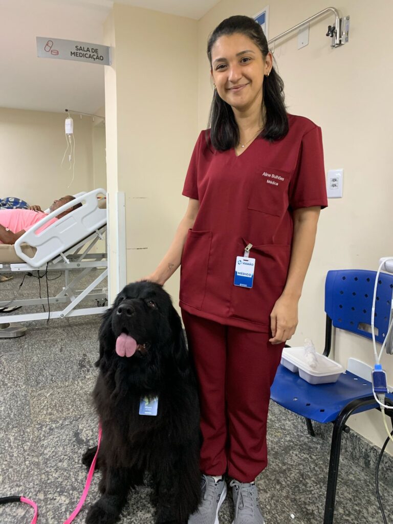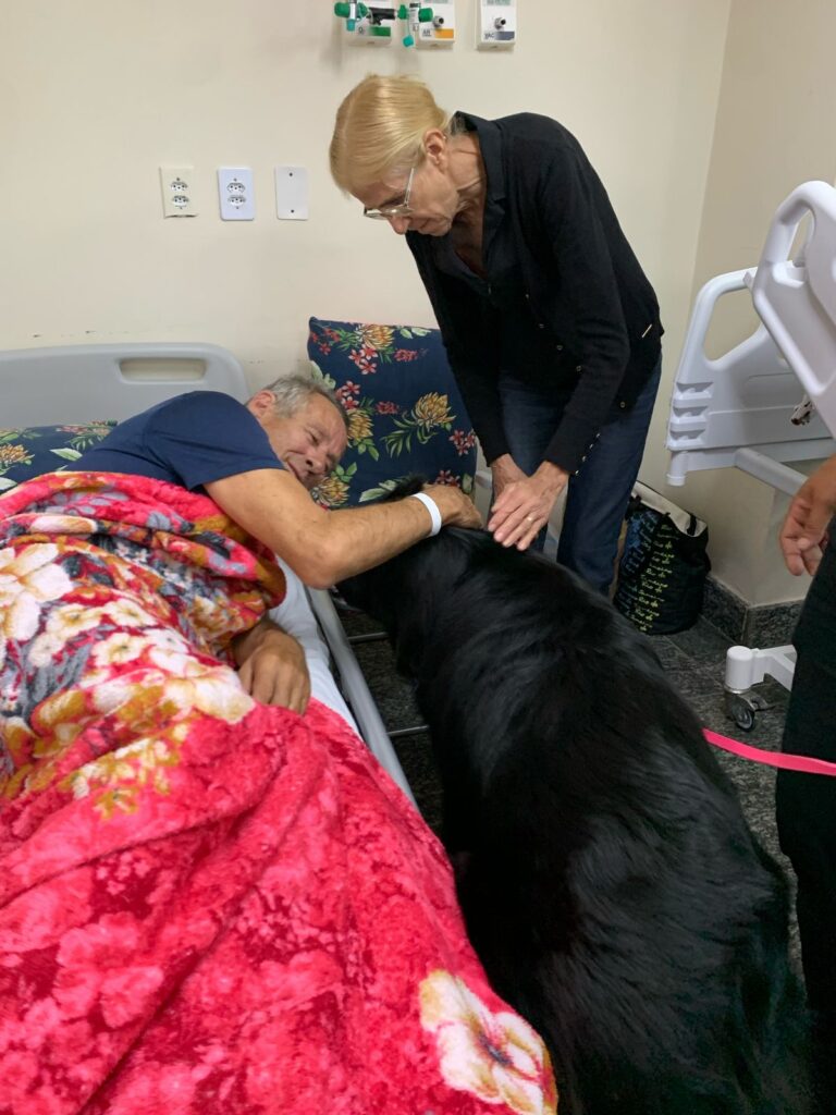 “Não há quem resista à presença dos cães. Eles chegam e transformam o ambiente como mágica. Os pacientes já abrem o sorriso quando veem eles entrando, não há como não se encantar e se render ao carinho incondicional dos cães. Além do aconchego e das memórias afetivas proporcionadas, a leveza e lealdade de um cão fortalecem o paciente, trazem alegria e motivação, acelerando o processo de cura”, afirma Batista. De acordo com o veterinário, a terapia exige cuidado com a saúde do animal para as visitas. “Os cães são identificados pelos adestradores com um perfil necessário para a terapia. Eles têm tratamento de vacinas diferenciado, realizam exames de check-up antes de entrar em unidades de saúde para evitar contaminação”, explica.