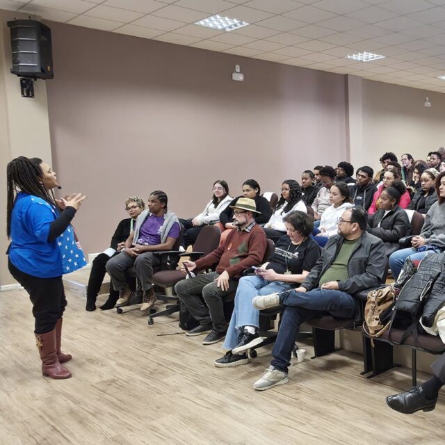 A programação contou com palestra “Mate Masie – Eu guardo aquilo que eu ouço”, pela professora, atriz e arte-educadora Dedy Ricardo, que abordou a oralidade e a corporeidade como ferramentas de construção e transmissão do conhecimento, especialmente na perspectiva dos povos originários e negros, destacando práticas dos quilombos e suas ressignificações na contemporaneidade. A atividade contemplou dinâmicas em que o público participou, promovendo reflexões e trocas, a partir de elementos da cultura popular e dos saberes orais.