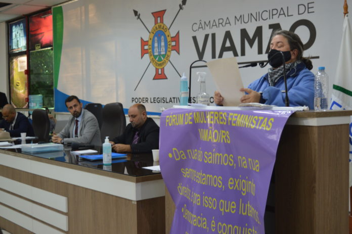 Na sessão ordinária desta quinta-feira (31), na Câmara Municipal de Viamão – CMV, excepcionalmente, o espaço da tribuna popular foi utilizado pelo Instituto Travessias, representado por Eliete Citadin. O foco da manifestação foi o Fórum das Mulheres Feministas de Viamão.