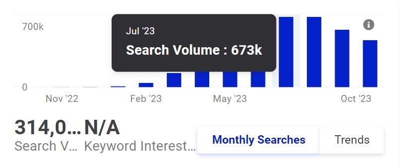 De acordo com os dados da ferramenta de SEO Mangools, o Fortune Tiger alcançou o maior volume de buscas do ano entre julho e agosto, contando com mais de 670 mil buscas.