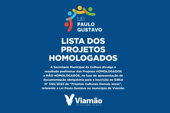 A Secretaria Municipal da Cultura divulga o resultado preliminar dos Projetos HOMOLOGADOS e NÃO HOMOLOGADOS na fase de apresentação de documentação obrigatória, para a inscrição no Edital n° 550/2023 de "Projetos Culturais