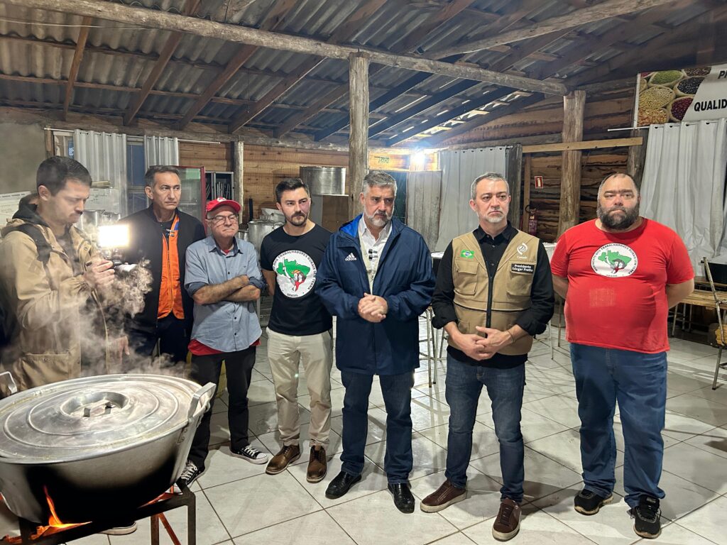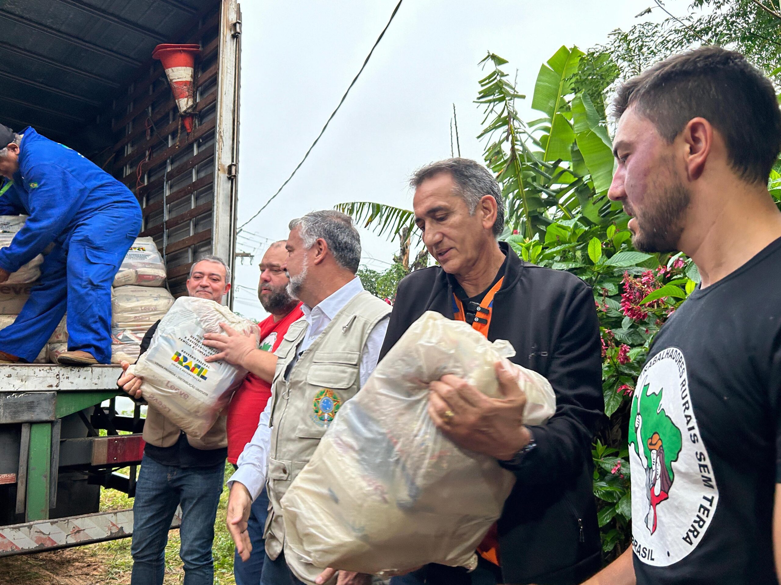 O Deputado Adão Pretto, o Ministro Paulo Pimenta, o Presidente da CONAB Edegar Pretto e o Ministro Waldez Goés estiveram presentes na Cozinha Solidária do assentamento Filhos de Sepé, em Viamão. Eles acompanharam a entrega de cestas de alimentos do Governo Federal, logo depois em outras instituições do município que também foram contempladas.