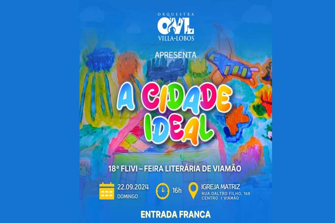 A Orquestra Villa-Lobos tem a alegria de apresentar o espetáculo A Cidade Ideal na programação cultural da 18a FLIVI - Feira Literária de Viamão, neste domingo, 16h, na Igreja Matriz da cidade.