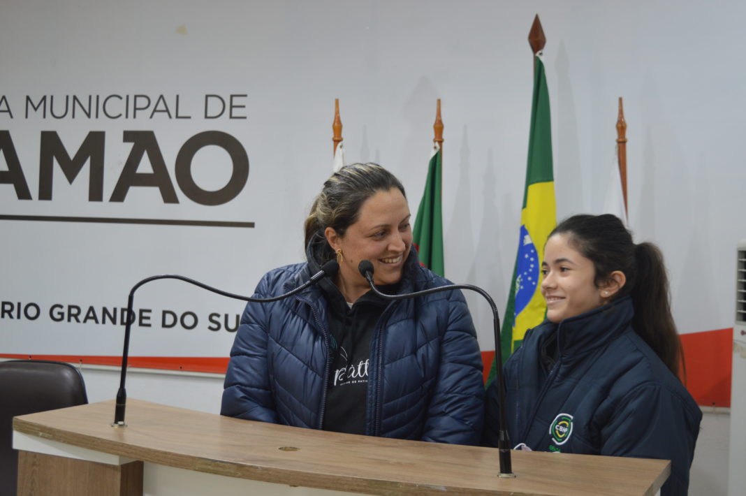 Débora Pereira, mãe da patinadora Laura Pereira, que faz parte da Federação Gaúcha de Patinagem, fez uso da tribuna da sessão plenária desta terça-feira (31), na Câmara Municipal de Viamão – CMV, para divulgar o campeonato Sul-Americano de Patinação Artística, do qual a filha participará nos próximos dias 4 e 7 de junho, na cidade de San Juan, na Argentina, representando Viamão e o Brasil. A atleta foi convocada pela seleção brasileira de patinagem para disputar o campeonato.