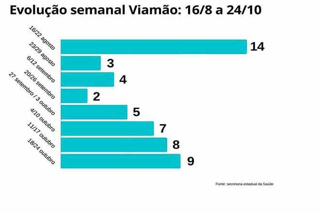 O óbito de um homem de 89 anos, no dia 24 deste mês, também foi acrescentado aos números de Viamão nesta última contabilização feita pelo governo gaúcho. Com esse registro tardio, a semana epidemiológica de 18 a 24 outubro soma 9 mortes - o maior número de vidas perdidas deste o período entre 16 e 22 de agosto.