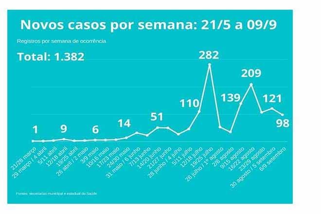 A Prefeitura, que realizou apenas duas atualizações nos últimos cinco dias, tem 72 pacientes a menos. As secretarias estadual e municipal da Saúde indicam o mesmo número de óbitos. Pelo menos 527 estão recuperados.