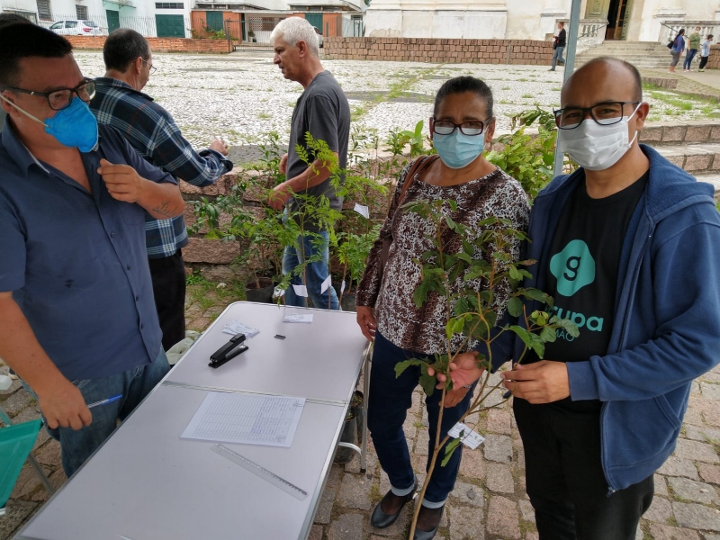 Rogério Busato estava passando pela Praça da Matriz e viu a movimentação dos técnicos do Meio Ambiente. “Estão para doação? Sério? Quero uma muda frutífera!” E, assim, levou uma muda de Araticum. As mudas estarão disponíveis para retirada das 9 às 17 horas. Durante o período, um técnico da Smma irá orientar quanto ao plantio.