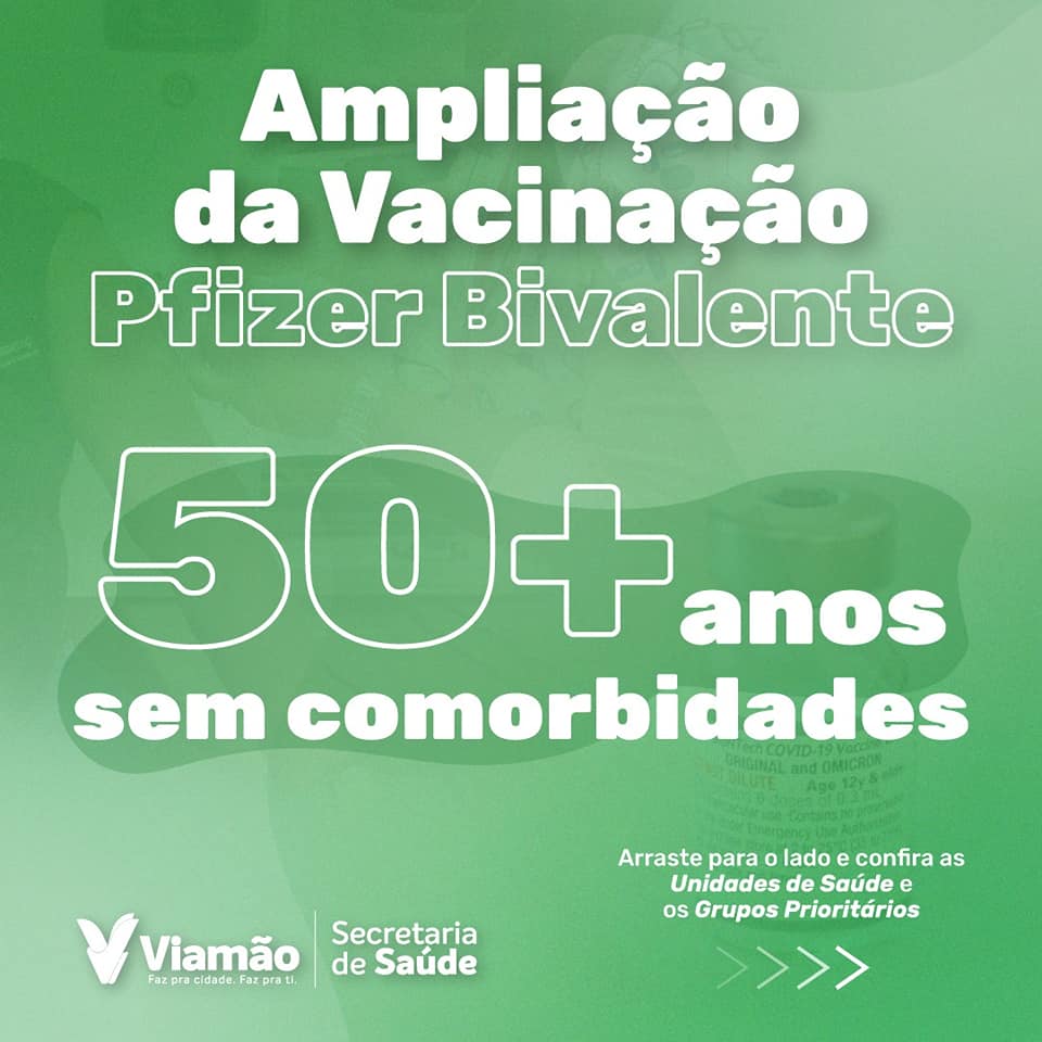 A partir desta quarta-feira (03/05), a vacina Pfizer Bivalente contra a Covid-19 estará disponível em todas unidades de saúde de Viamão para pessoas com 50 anos ou mais, sem comorbidades, além de outros grupos prioritários, como Trabalhadores da Saúde, Gestantes e Puérperas, Pessoas com Comorbidades acima dos 12 anos, Indígenas, Quilombolas e Imunocomprometidos acima de 12 anos.