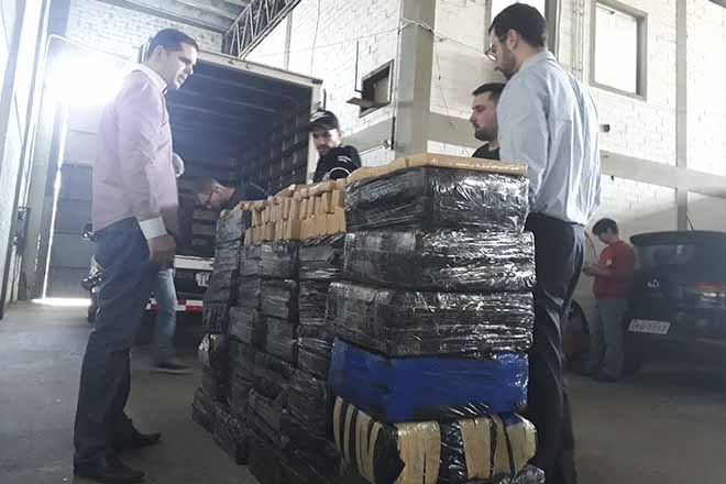 A droga estava em um caminhão, apreendido junto a outros quatro veículos clonados.
