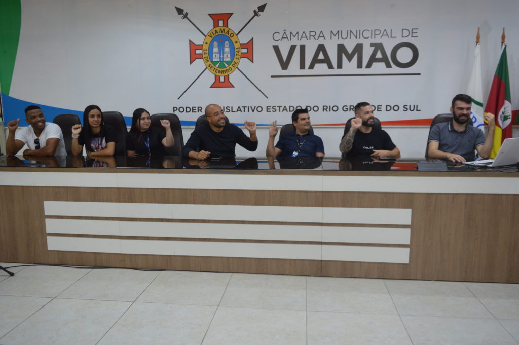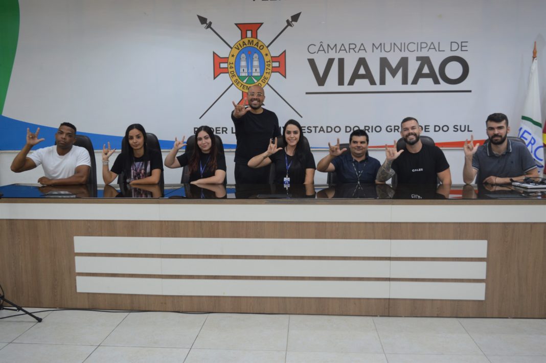 Na manhã desta segunda-feira (25), o vereador Thiago Gutierres – PSD promoveu uma aula de Língua Brasileira de Sinais – Libras, no plenário Tapir Rocha, destinada ao treinamento de sua equipe de gabinete para o atendimento à população surda da cidade. A aula foi ministrada pela intérprete e professora de Libras Camila Corcini, que acompanha o vereador nas sessões da Câmara Municipal de Viamão – CMV com o intuito de proporcionar acessibilidade.