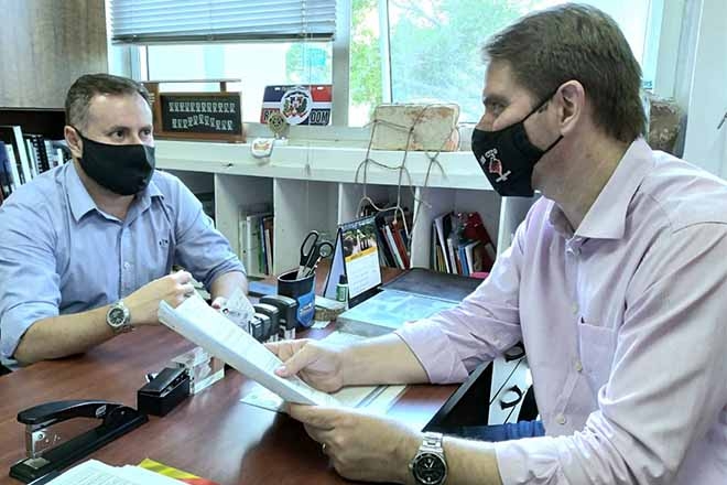 O vereador de Viamão Guto Lopes esteve na Câmara de Porto Alegre, em reunião com o vereador Márcio Bins Ely, que disputa a presidência da casa em 2021. O objetivo é tentar barrar a cobrança das taxas de impressão e envio do licenciamento veicular, após a informação de que o Detran-RS não realizará o serviço.