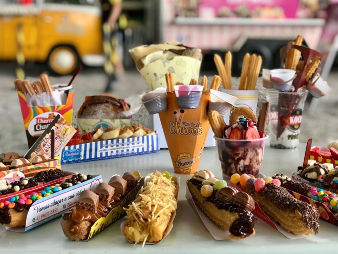 Além dos churros, haverá opções de pratos da gastronomia artesanal, como hambúrguer, comida mexicana, pizzas, batatas assadas, crepes franceses, sorvetes, dentre outros preparos.