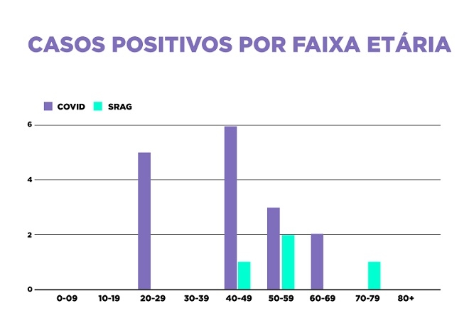 A maior parte dos casos da doença está concentrada em pacientes fora do grupo considerado de risco (acima de 60 anos). São seis notificações entre pacientes com idades ente 40 e 49 anos, cinco entre pessoas de 20 a 29 anos, três entre 50 e 59, duas entre 60 e 69 e uma entre 70 e 79. Quatro desses apresentaram Síndrome Respiratória Aguda Grave (SRAG), sendo dois na faixa etária de 50 a 59 anos, um com idade entre 40 e 49 anos e um entre 70 e 79 anos.
